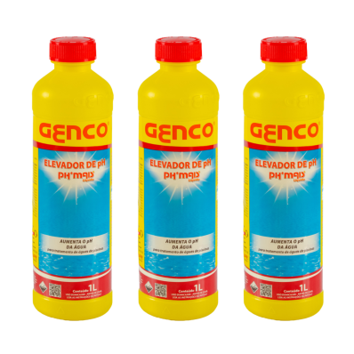 Kit 3 Elevador de pH Líquido Genco pH+ 1 Litro Piscinas