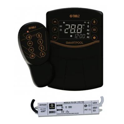 NA EMBALAGEM CONTÉM: 1 Fonte 60w Blindada Fasgold 1 Controlador Smart Pool Mtz1462 2ª Geração Wifi Rgb 200W Tholz 1 Controle Remoto A prova d´água 1 Cabo RF externo 1 Manual do produto 2 sensores de temperatura NTC 10K, com cabo 2 mts (Aparelho com wifi integrado, sem necessidade do Smart connect)