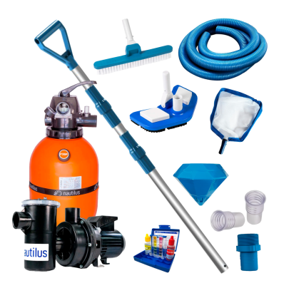 | Filtro F350P + Bomba NBFC-1/M 1/3CV + Kit Limpeza Total LazerIntrodução: Mantenha sua piscina sempre limpa, segura e pronta para o uso com o Kit Total Lazer. Um conjunto completo que combina filtro, bomba e acessórios de limpeza, garantindo água cristalina e manutenção prática para piscinas residenciais de todos os tipos: fibra, vinil ou alvenaria.
